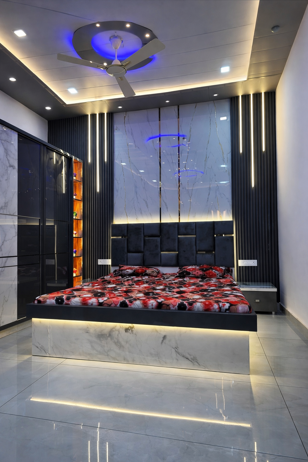 Elegant Marble & Floral Ceiling Bedroom