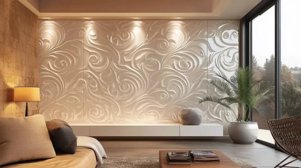 - Living Room: Use textured or marble-effect panels for a luxurious feel.